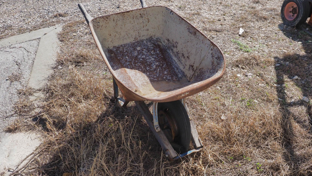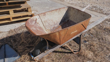 Standard construction wheelbarrow. Condition:Condition: Needs new tire. *The University of Texas at Austin makes no claim of physical or mechanical , and functionality of items available through SWICO Auctions. All items are sold “As is, where is”. It is the sole responsibility of the bidder to physically inspect items before bidding and assume all risk. Photos and descriptions are for preview only. All sales are final and no refunds will be issued. Please refer to the SWICO “Terms of Service” in which you have agreed to.