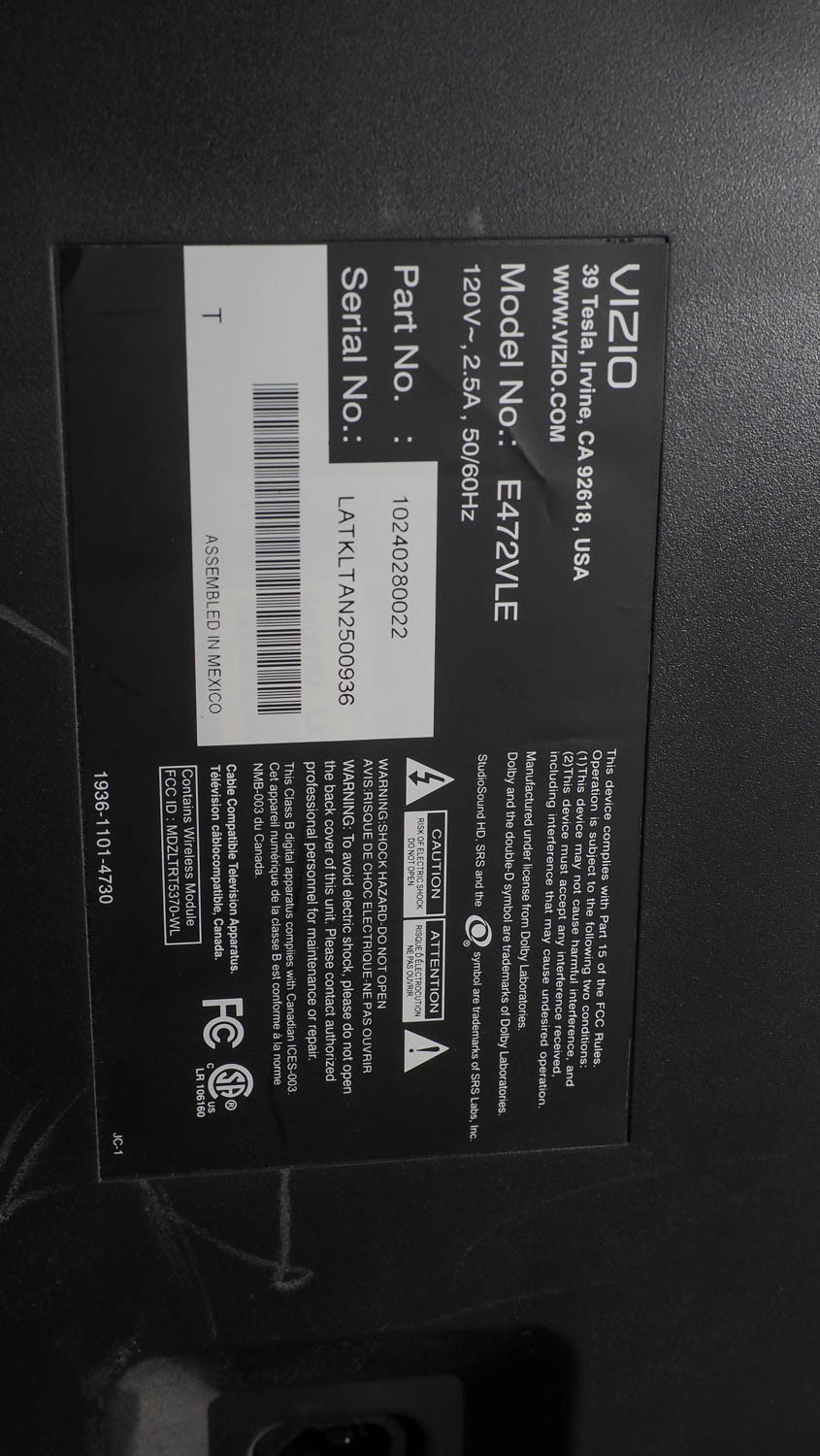 Visio TV E472VLE flat panel TV Condition:Condition comes on. *The University of Texas at Austin makes no claim of physical or mechanical , and functionality of items available through SWICO Auctions. All items are sold “As is, where is”. It is the sole responsibility of the bidder to physically inspect items before bidding and assume all risk. Photos and descriptions are for preview only. All sales are final and no refunds will be issued. Please refer to the SWICO “Terms of Service” in which you have agreed to.
