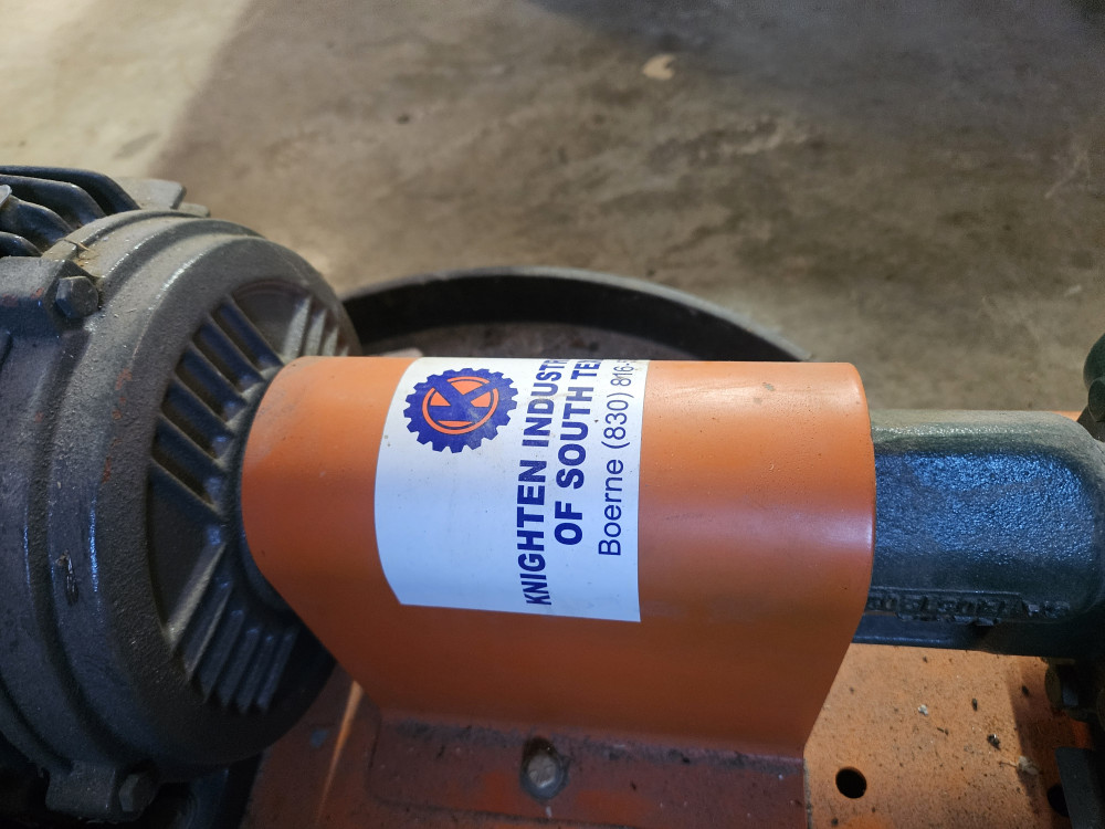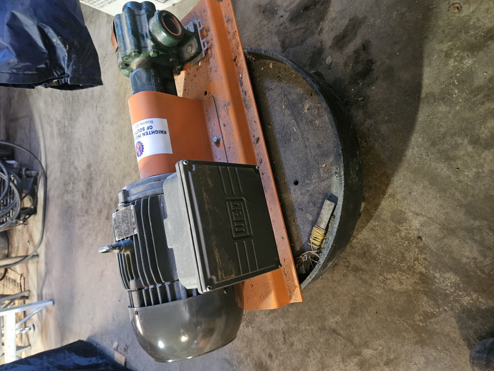 Never used electric pump, 1 1/2 inch inlet and outlet. Dusty from storage. 220 volt.