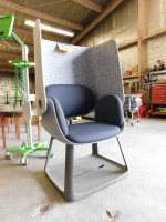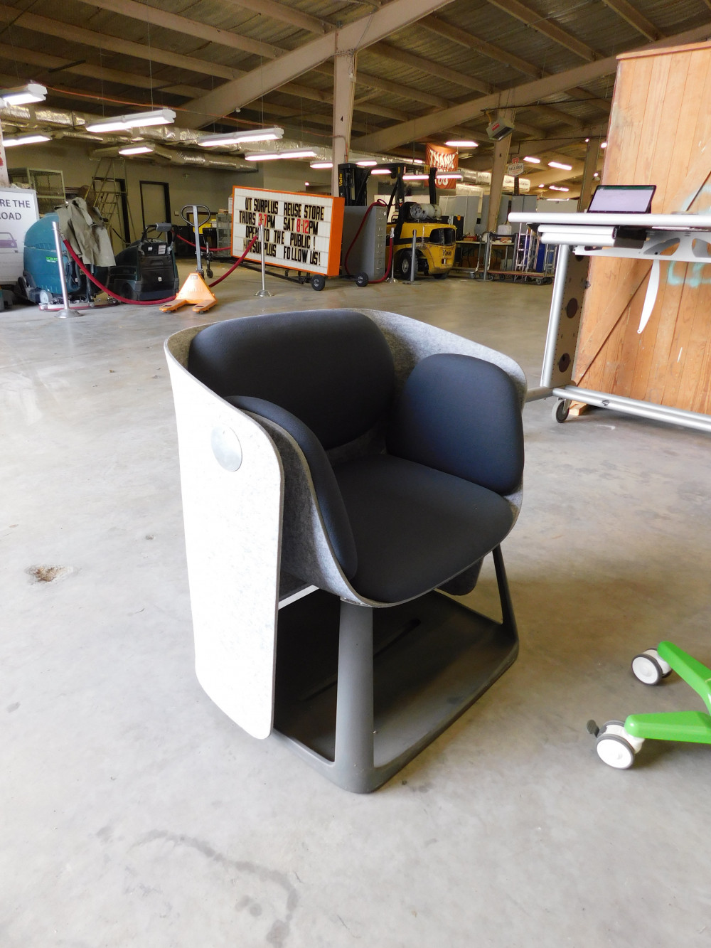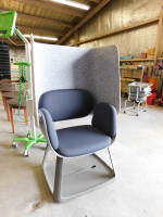 Sunon UF Single Chair with moveable privacy barrier. Ideal for office areas where privacy can be easily added to any situation by flipping the built in divider shade.