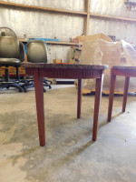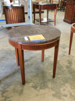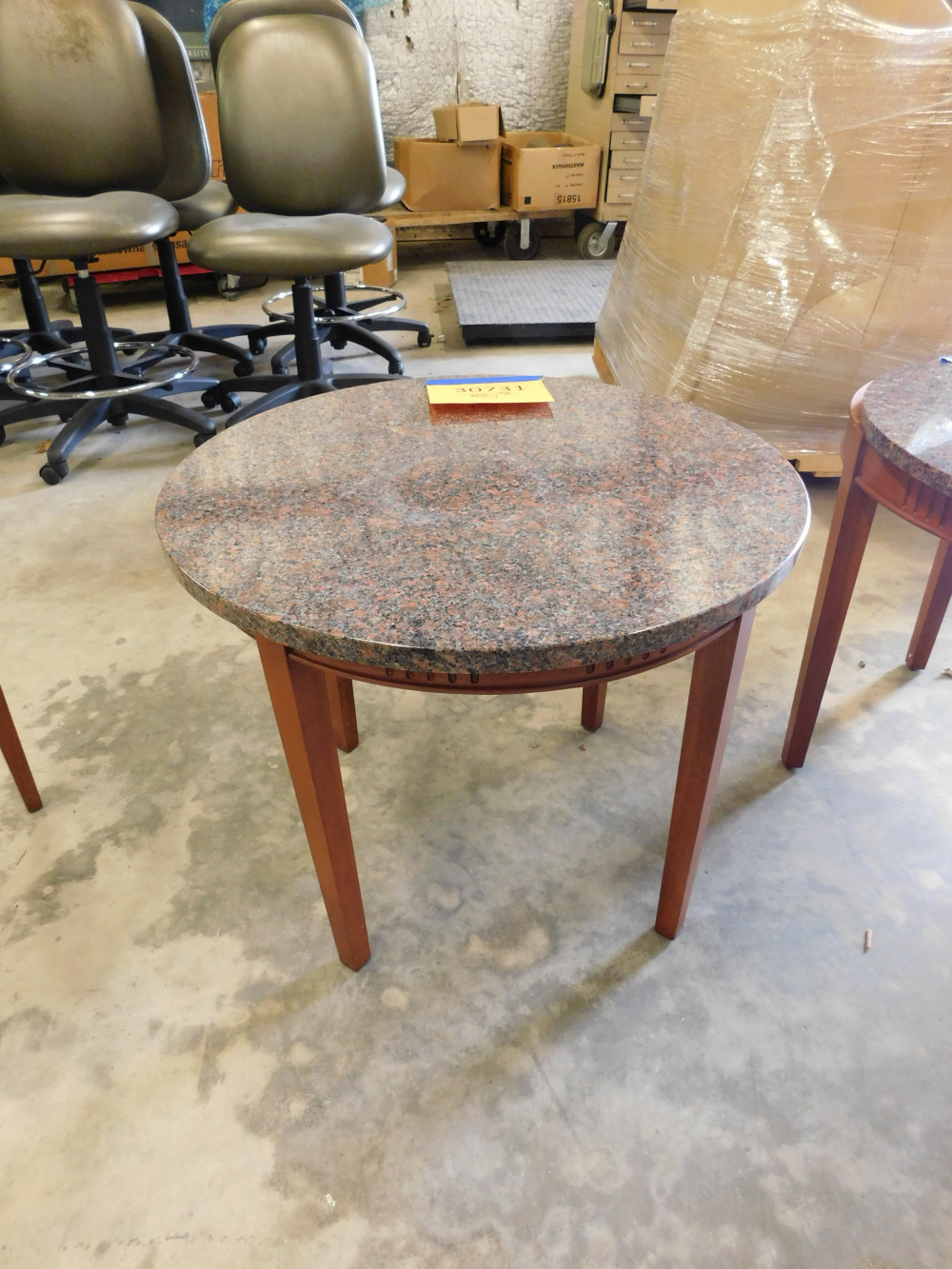 A circular granite coffee table with a custom wooden frame and a granite top. 24" diameter, 20" tall. Granite top is not mounted to base.