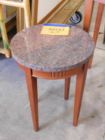 Small Circular Granite Side Table. 16" diameter, 22" tall. General wear and tear all around.