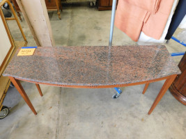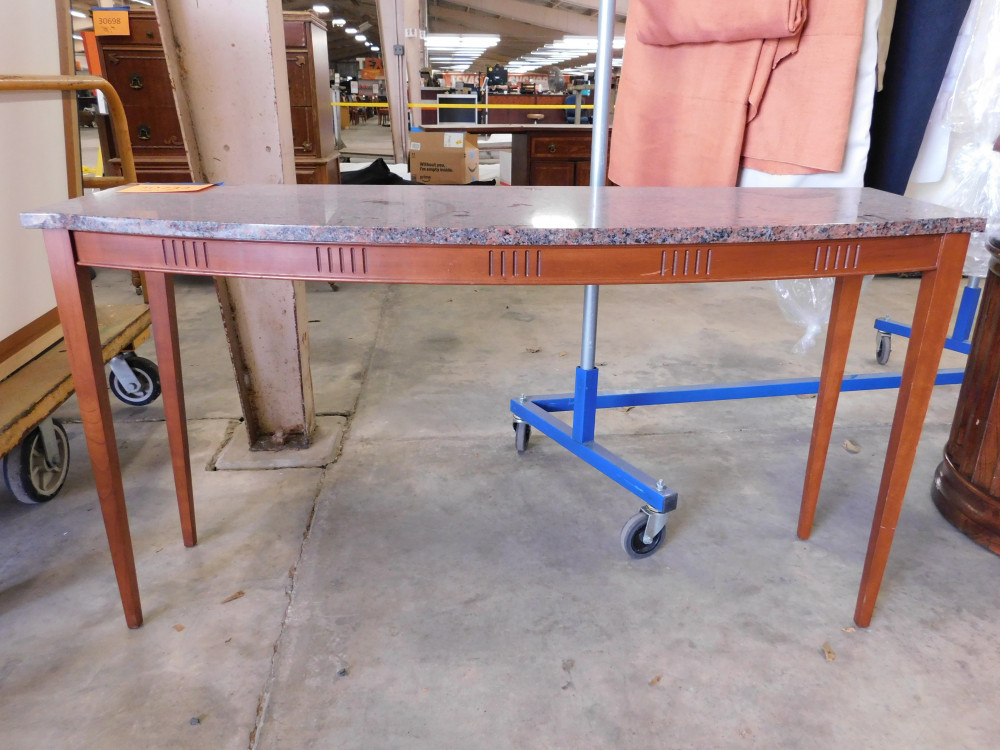 Tall Granite Topped Table. 54" wide, 30" tall. General wear and tear all around, mainly on the wooden frame.