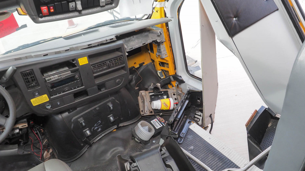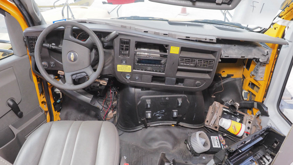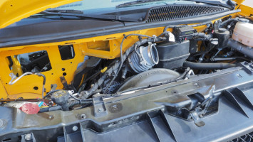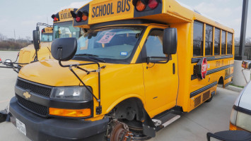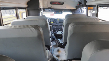 6.6L Gas motor, Automatic transmission, 14 passenger. Condition: Wrecked. Totaled. Flatbed only for pick-up. Single rear wheel, missing some parts