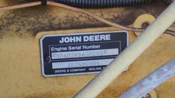 John Deere Diesel motor, 5812 hours. This item is subject to a Texas Diesel tax of an additional 1.5%. If you are exempt from sales tax you are exempt from both taxes. Condition:Runs and operates, 1 front tire missing, 1 front tire flat.