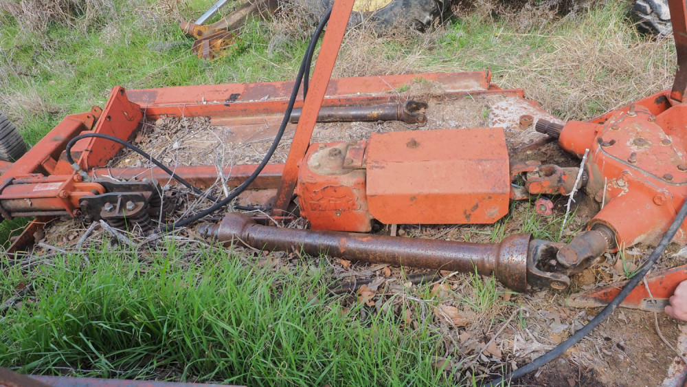 Single wing mower, Model FM10, Condition:Gearbox on wing section has a broken input shaft, heavy use. Bent deck and guards on the wing.