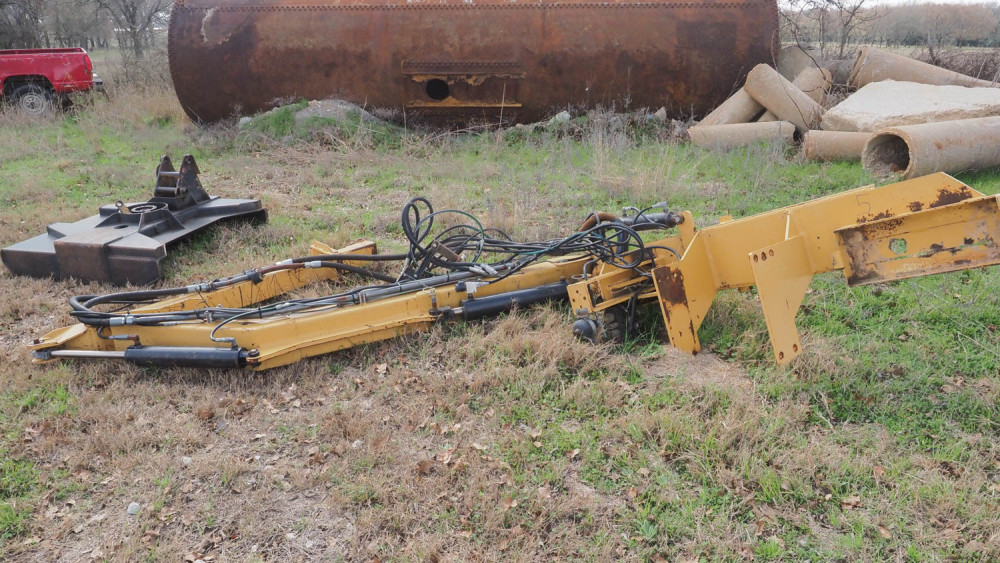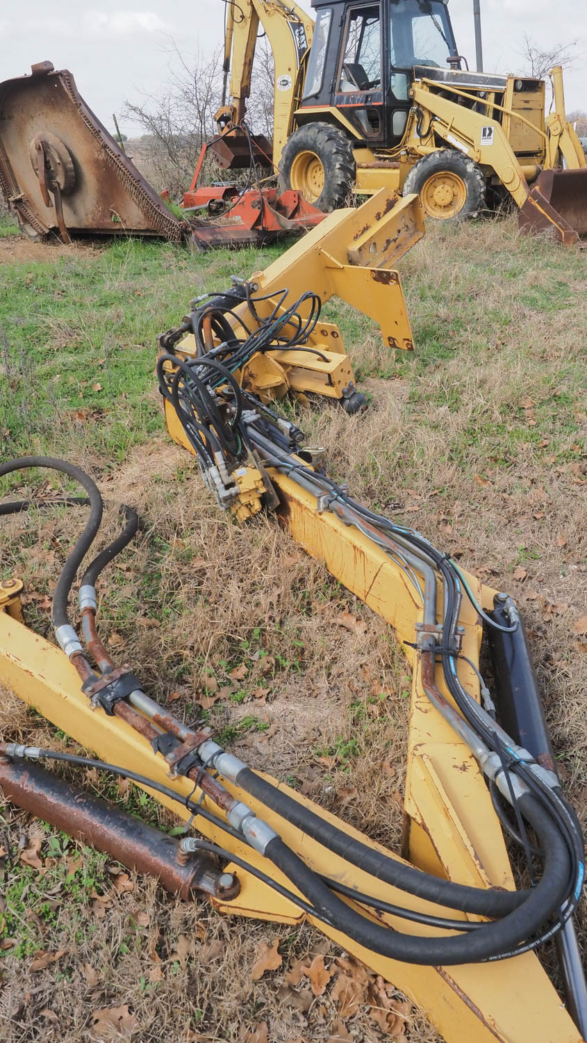 With Custom built mower deck. Includes Arm, deck, hydraulic tank, controllers, PTO hydraulic pump, Condition:Missing the drive motor on the deck. Otherwise it was operating when removed from the tractor.