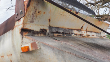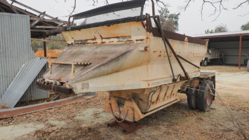 14 yard, Condition:Operates. Last aged in 2024. Rust holes thru out sides, and belly.