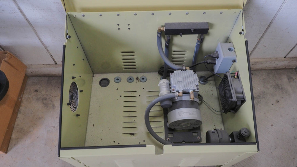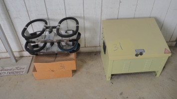 Steel box with pump, 2 head units, 2 boxes of hose. 110v Condition:Never installed