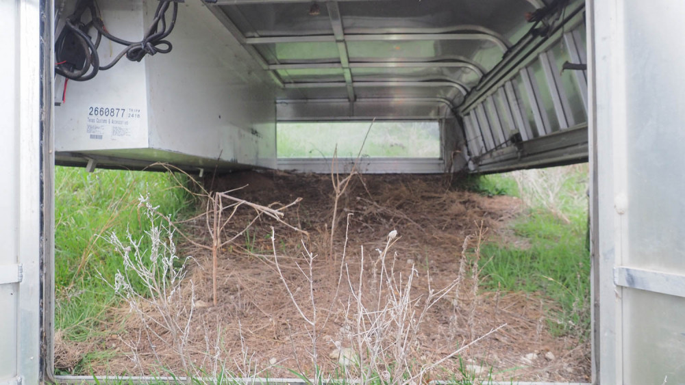 With drivers side storage tray. Double rear doors. Roof is 24” tall above the side rails. 23.5” side rail height