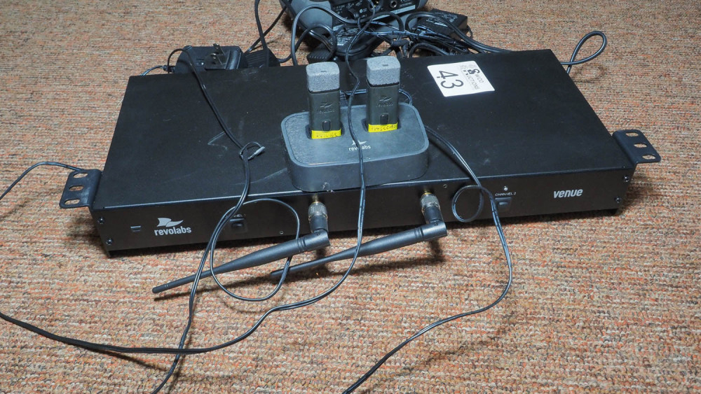 2 Shure PGX4 wireless receivers with power cords. Revolabs Venue dual mic receiver Condition:No transmitters for Shure systems. Batteries on the revo system do not seem to charge.
