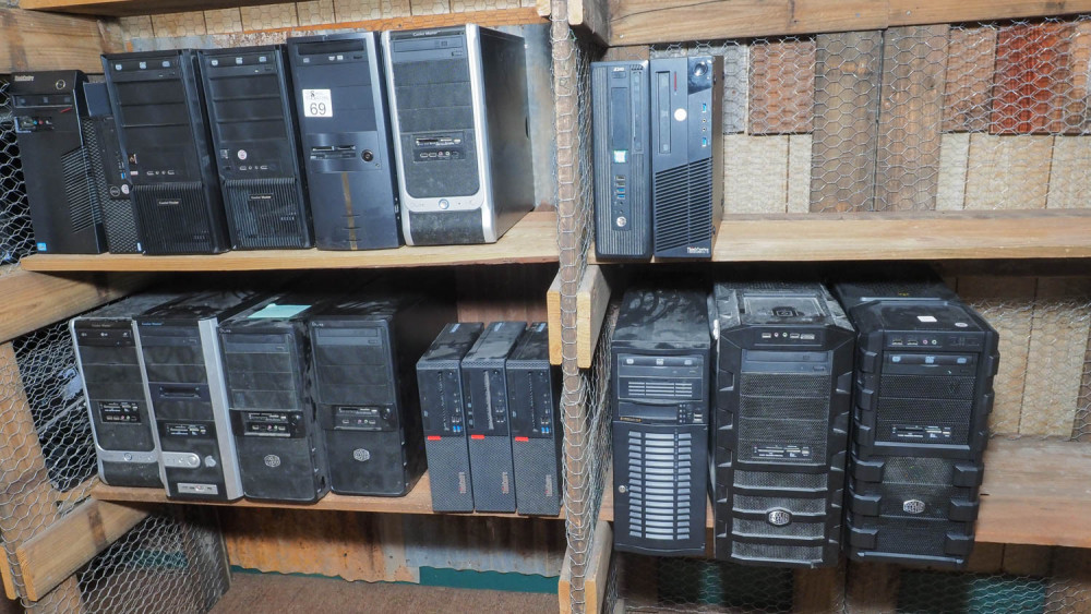 29 desktops, 7 laptops, 3 mini computers. Dell Optiplex 3070, ThinkCentre, customs. Condition:No hard drives, some are barebones cases