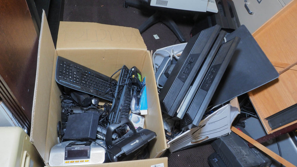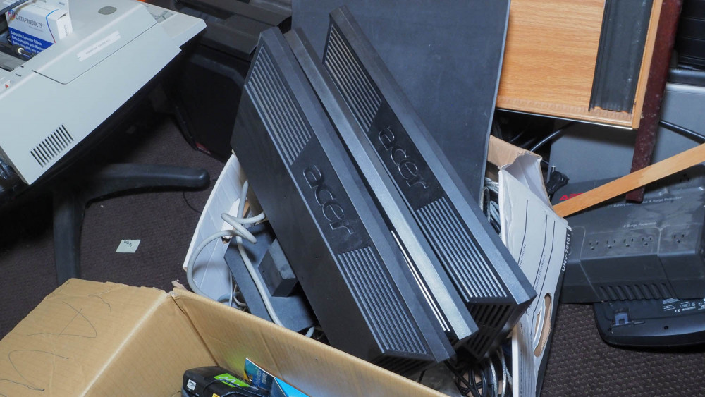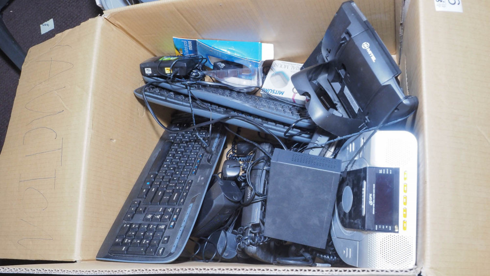 Keyboards, IP phones, alarm clock radio, mice, network switches, Acer monitors, HP officejet pro 8600 printer. Condition:Unknown