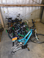 Lot of Bicycle Frames. Various brands, types, sizes, all in different conditions.