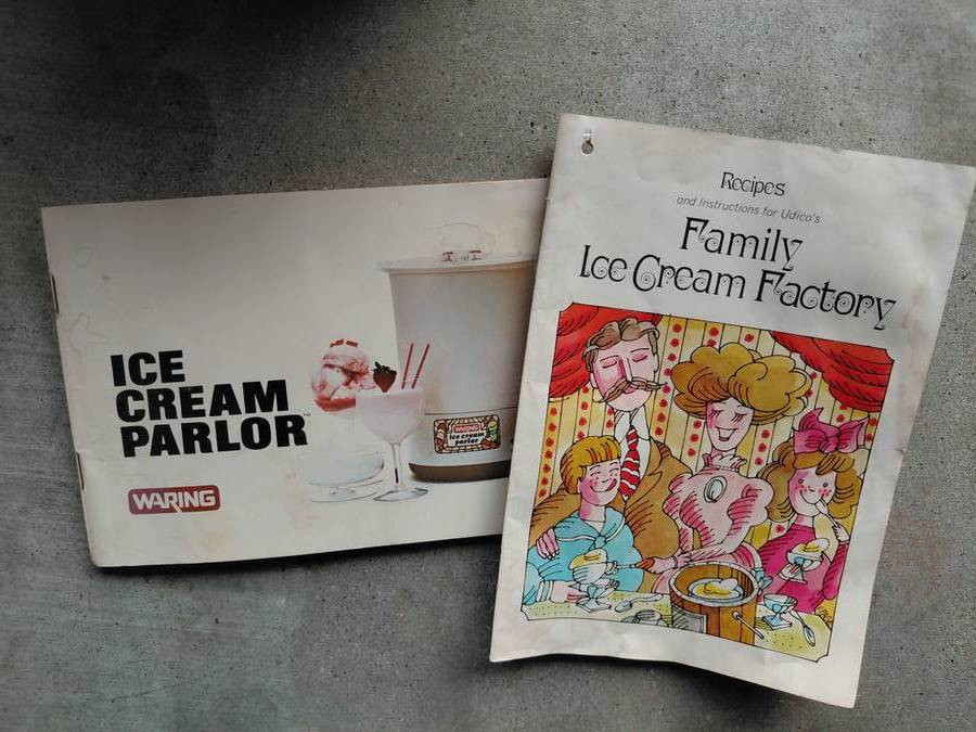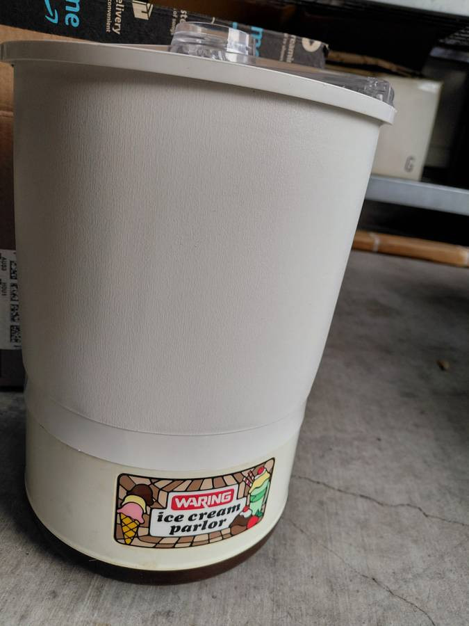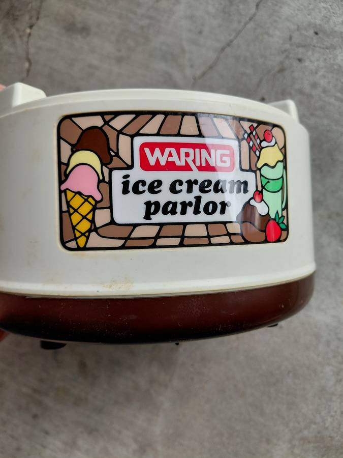Waring electric ice cream maker. All parts included. Recipes and instructions too. Motor works. (But I haven't made ice cream in it in years.)