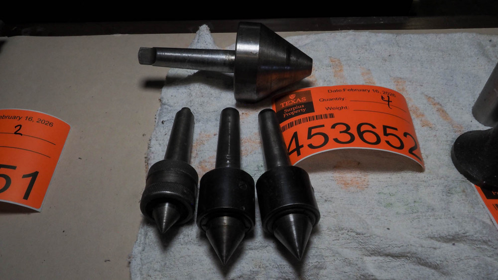Assorted lathe centers. Condition:Condition unknown. *The University of Texas at Austin makes no claim of physical or mechanical , and functionality of items available through SWICO Auctions. All items are sold “As is, where is”. It is the sole responsibility of the bidder to physically inspect items before bidding and assume all risk. Photos and descriptions are for preview only. All sales are final and no refunds will be issued. Please refer to the SWICO “Terms of Service” in which you have agreed to.