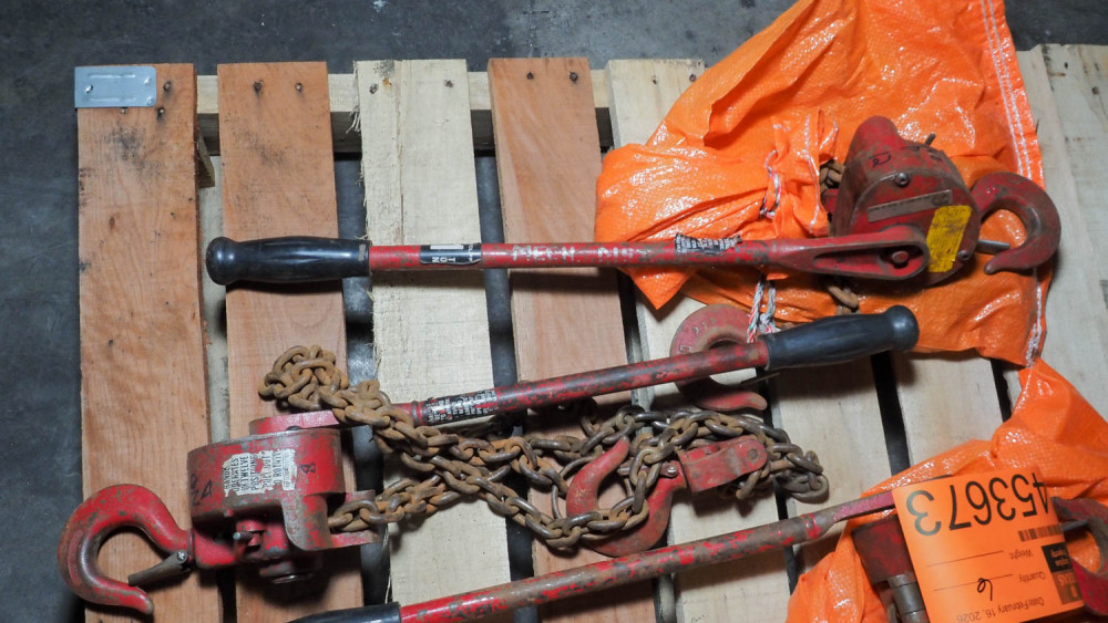 Chain lifting equipment. Condition:Condition: Items appear to need spring repair; down action issues. *The University of Texas at Austin makes no claim of physical or mechanical , and functionality of items available through SWICO Auctions. All items are sold “As is, where is”. It is the sole responsibility of the bidder to physically inspect items before bidding and assume all risk. Photos and descriptions are for preview only. All sales are final and no refunds will be issued. Please refer to the SWICO “Terms of Service” in which you have agreed to.