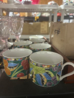 Set of 6 Vintage Multi Color Coffee Mugs and Qty of 4 Vintage Sundae Glasses and 2 Sets of Coasters NEW Great Deals and Steal