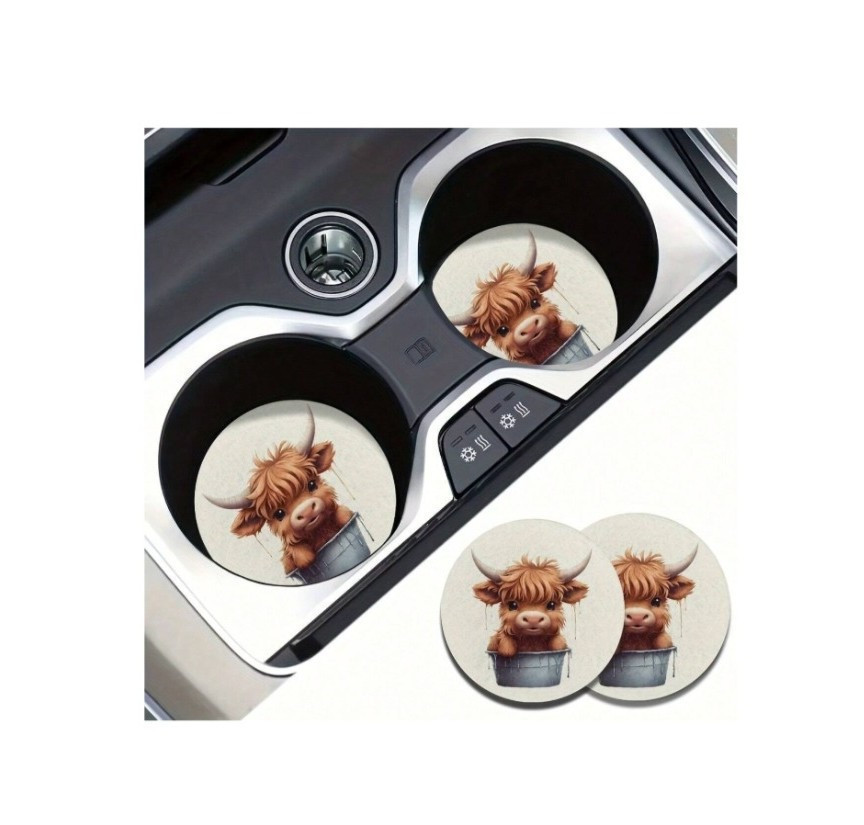 2pcs Cow Water Absorbable Car Cup Holder Coaster Mats and Highland Cow Canvas Great Deals and Steal
