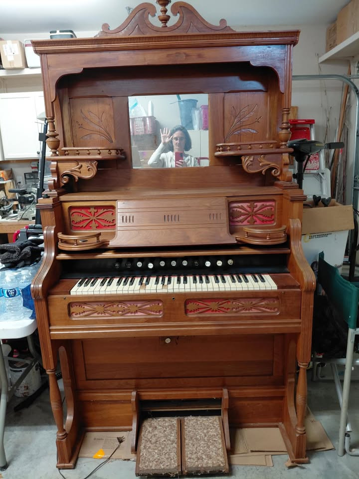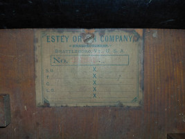 Etsey Organ Company parlor pump organ. Serial # 251997, built in 1892. Modified with electric blower so pumping not necessary. It can be either electric or manual with pedals.