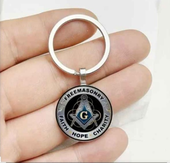Qty of 2 Freemasonry Compass Keychain, Simple Style Zinc Alloy Keyring with Faith, Hope, Charity Motto, Glass Material, Non-Plated, Non-Woven Bin 2 ***