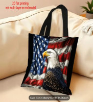 Majestic American Bald Eagle Tote Bag - Patriotic 2D Flat Print, Durable Polyester, Black with American Flag Design, Perfect for Shopping, Travel, Office, and Use, 13.19x14.96 Inches ****** B