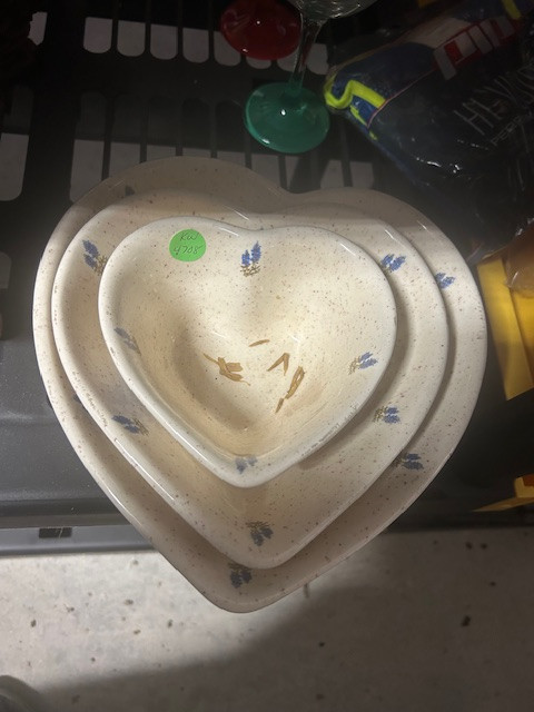Qty of 3 Heart Shaped Bowls and Beautiful Heart Shaped Glass Tray Great Deals and Steal