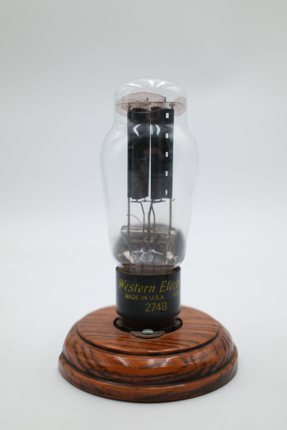 Vintage Western Electric 274B Vacuum Tube. Prized for usage in audio equipment. Fully untested and mounted on display base. Tube appears to be missing some base contacts.