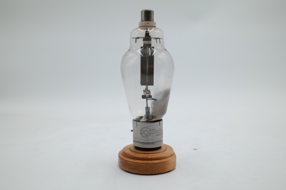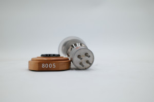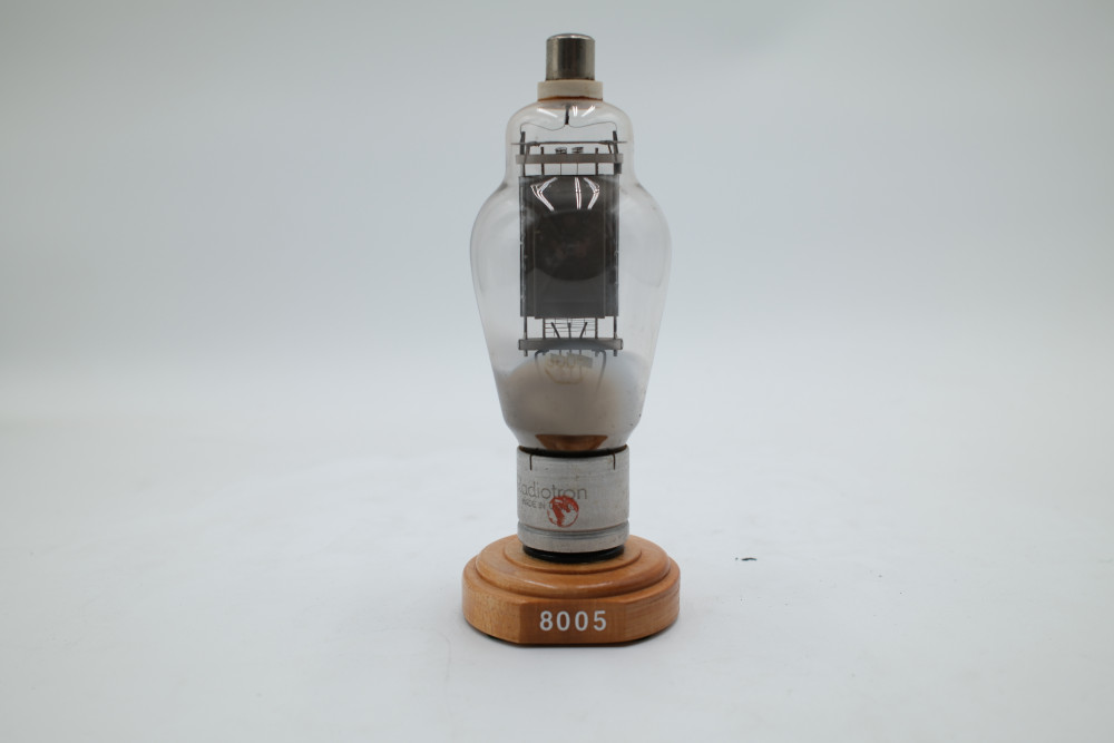 One RCA Model 8005 Vacuum Tube mounted to a wooden display base. Tube glass appears to be free of cracks, but the tube itself is entirely untested.