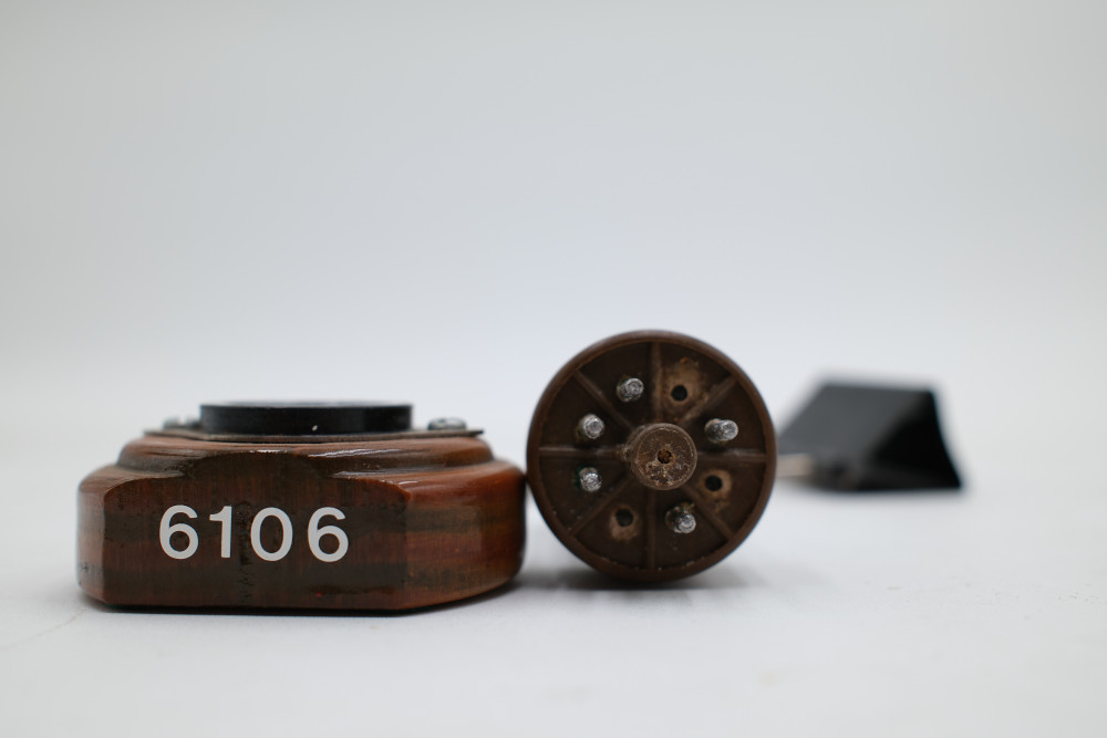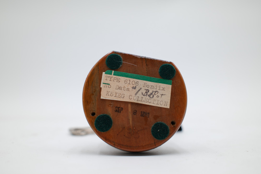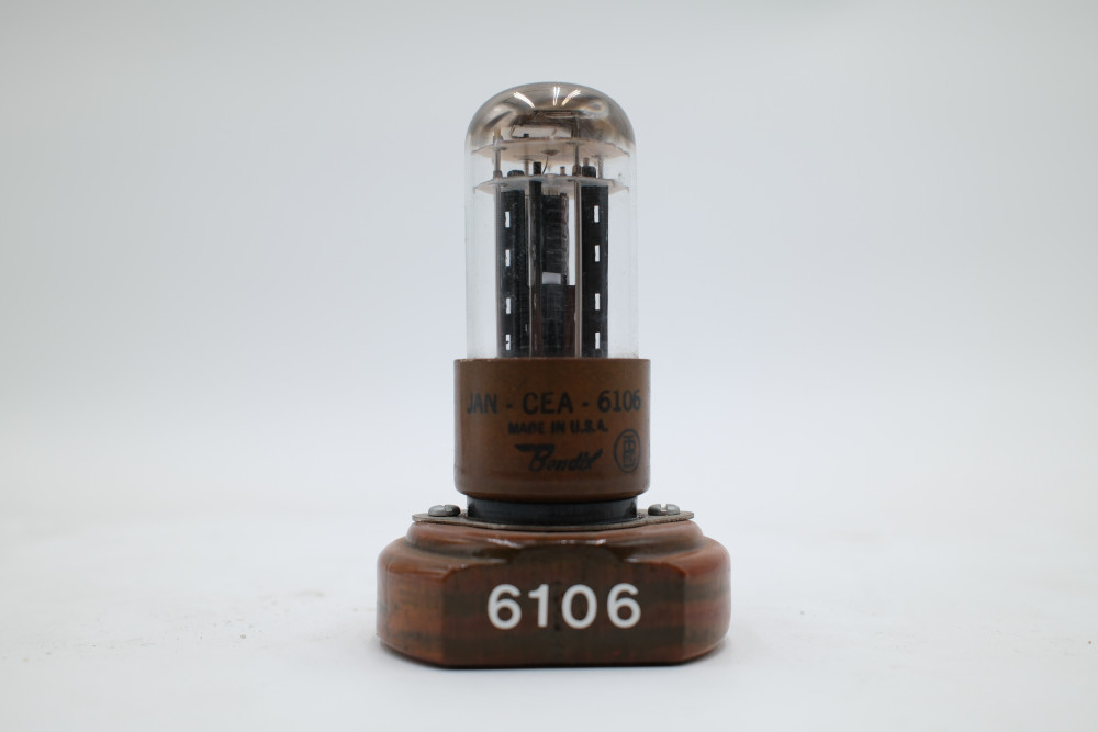One Bendix 6106 Vacuum Tube mounted to a wooden display base. Tube glass appears to be free of cracks but is entirely untested. Includes original collection sorting tag.