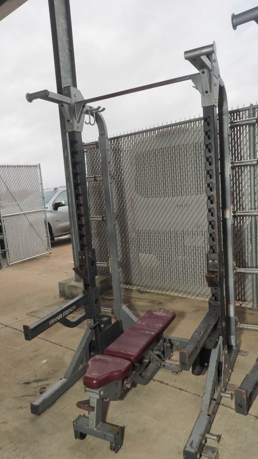 Hammer Strength Half Rack system with Dock’N’Lock bench (#2) College Station Isd College Station Isd College Station Isd Sports & Recreation