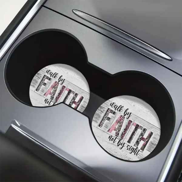 2pcs Walk By Faith Not By Sight Absorbent Car Cup Holder Coasters