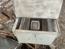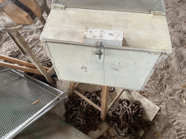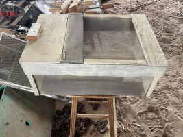 19”x12”x9” tall. With door latch. Made of wood and hardware cloth.