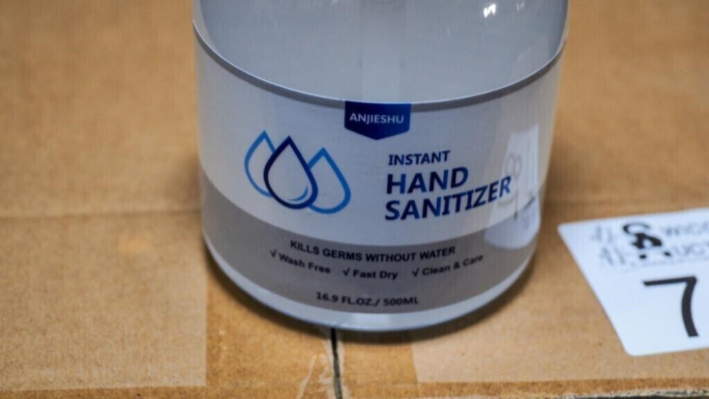 12 bottles of hand sanitizer and 50 disposable face masks