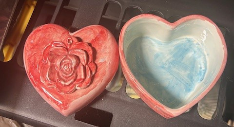 Beautiful Heart Shaped Trinket Box (Valentines Day) and Beautiful Pair of Earrings NEW and Vintage Heart Shaped Glass Dish Great Deals and Steal