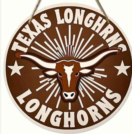 Texas Longhorns Crest Round Wooden Sign 8x8 Great Deals and Steal
