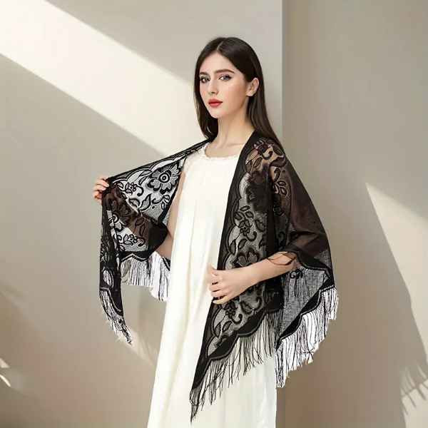 Qty of 2 Lace Shawl, Lace Triangle Towel Shawl Bin 7 Great Deals and Steal
