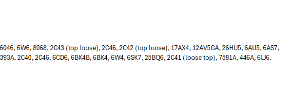 *All vacuum tubes are untested, their actual working condition is unknown, and they are presented to the best of our ability based solely on the photographs shown.