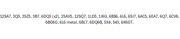 *All vacuum tubes are untested, their actual working condition is unknown, and they are presented to the best of our ability based solely on the photographs shown.