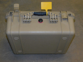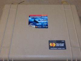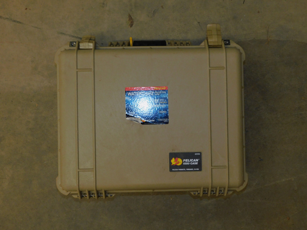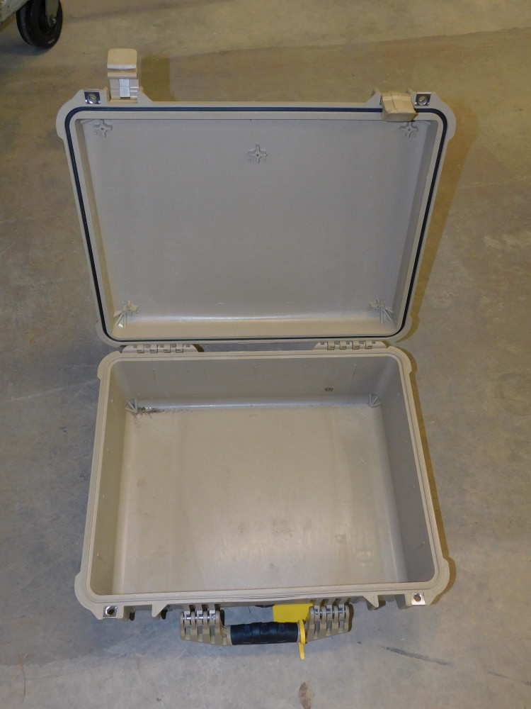 Pelican 1550 Case. Beige/tan color, no interior foam cutouts. General wear and tear all around and latches as intended.