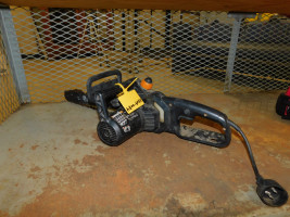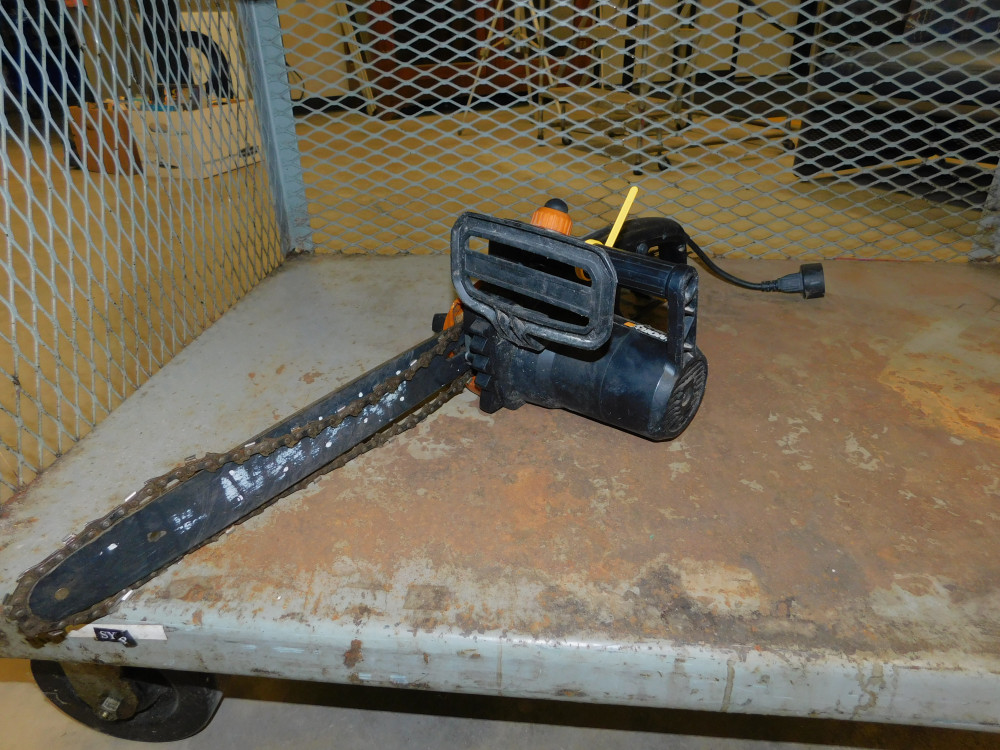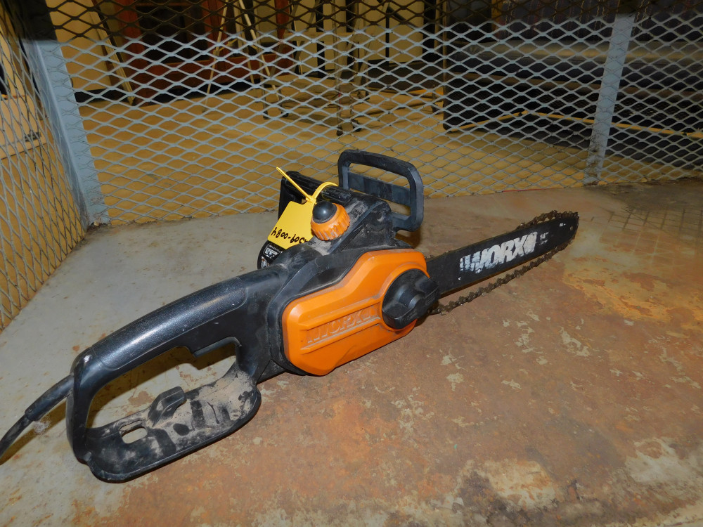 WorkX Chainsaw. Fully untested, chain is currently off track, general wear and tear all around.