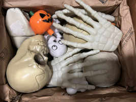 2 small boxes of Halloween decorations. Dusty from being in storage.