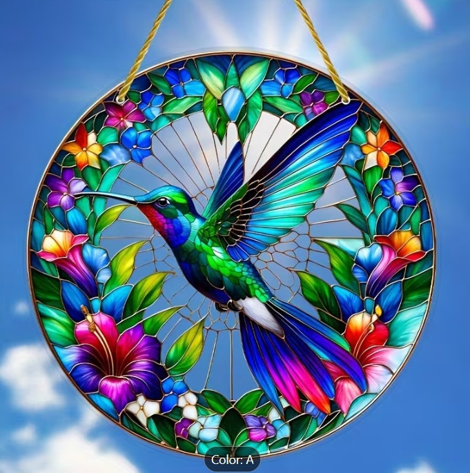 Hummingbird Suncatcher - 8-Inch Colorful Glass Window Hanging, Vibrant Animal-Themed Decoration **** Great Deals and Steal