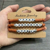 Texas Longhorns Beaded Bracelet Set, Hook 'Em Polymer Clay Stackable Wristband Great Deals and Steal