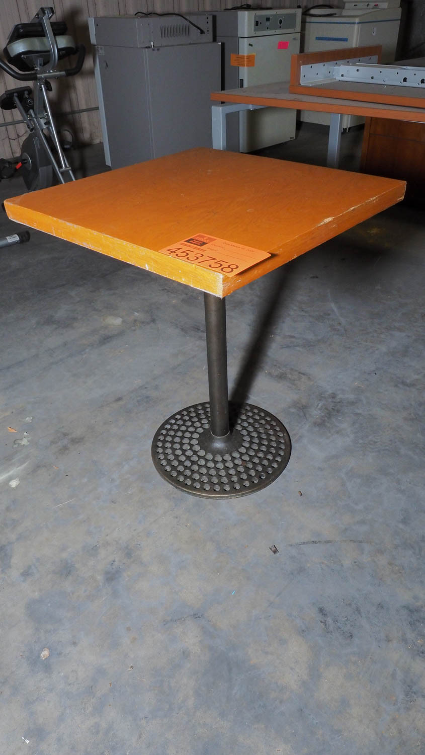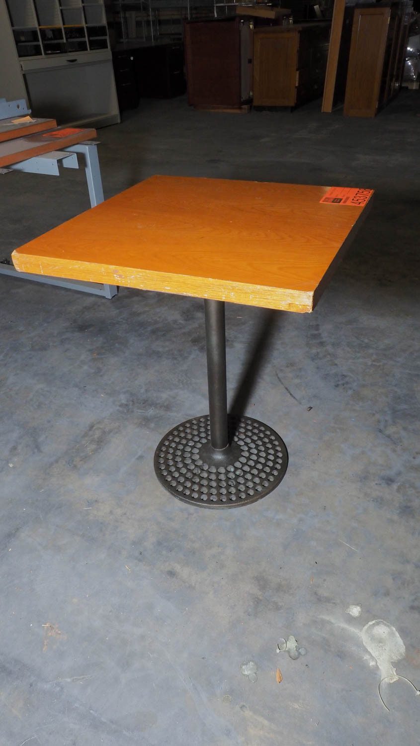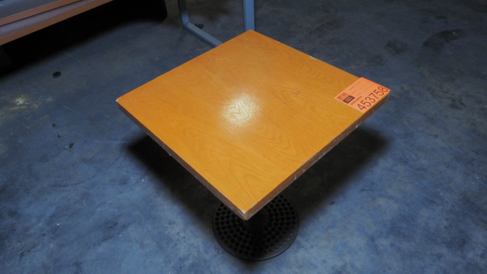 24 x 24 inch solid wood top; cast iron pedestal base. Condition:Condition unknown. *The University of Texas at Austin makes no claim of physical or mechanical , and functionality of items available through SWICO Auctions. All items are sold “As is, where is”. It is the sole responsibility of the bidder to physically inspect items before bidding and assume all risk. Photos and descriptions are for preview only. All sales are final and no refunds will be issued. Please refer to the SWICO “Terms of Service” in which you have agreed to.