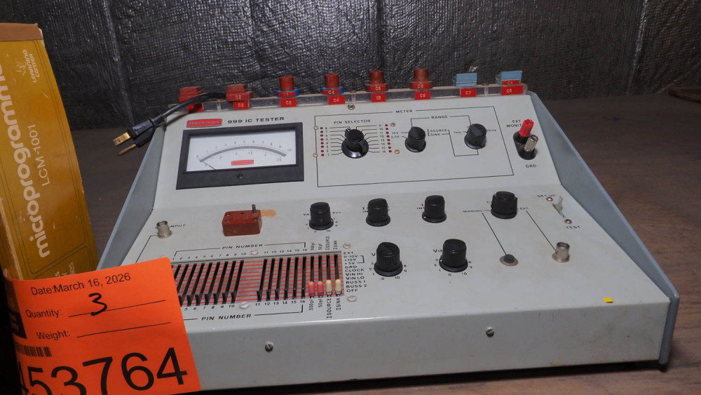 Includes Beckman 999IC tester, TI LCM-1001 microprogrammer, and custom test programmer. Condition:Condition unknown. *The University of Texas at Austin makes no claim of physical or mechanical , and functionality of items available through SWICO Auctions. All items are sold “As is, where is”. It is the sole responsibility of the bidder to physically inspect items before bidding and assume all risk. Photos and descriptions are for preview only. All sales are final and no refunds will be issued. Please refer to the SWICO “Terms of Service” in which you have agreed to.
