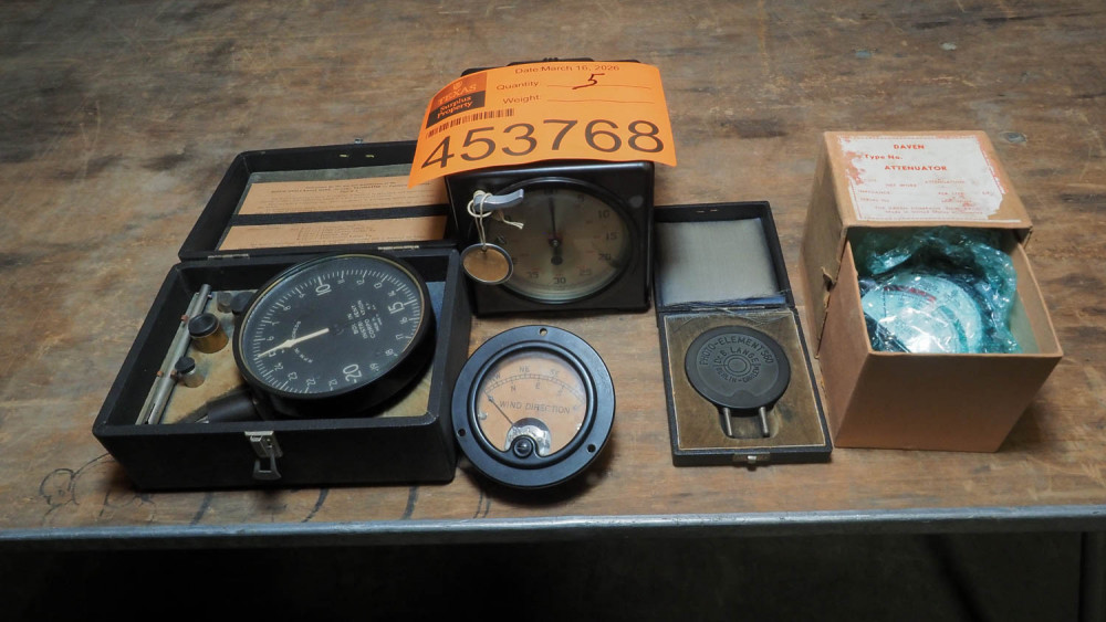 Includes tachometer, wind gauge, Standard Electric Time clock, and micro-ohm meter. Condition:Condition unknown. *The University of Texas at Austin makes no claim of physical or mechanical , and functionality of items available through SWICO Auctions. All items are sold “As is, where is”. It is the sole responsibility of the bidder to physically inspect items before bidding and assume all risk. Photos and descriptions are for preview only. All sales are final and no refunds will be issued. Please refer to the SWICO “Terms of Service” in which you have agreed to.