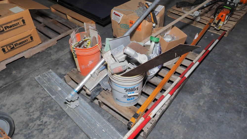 Includes concrete floats, trowels, limb trimmers, survey rods, door hardware, and sprinkler controls. Condition:Condition unknown. *The University of Texas at Austin makes no claim of physical or mechanical , and functionality of items available through SWICO Auctions. All items are sold “As is, where is”. It is the sole responsibility of the bidder to physically inspect items before bidding and assume all risk. Photos and descriptions are for preview only. All sales are final and no refunds will be issued. Please refer to the SWICO “Terms of Service” in which you have agreed to.