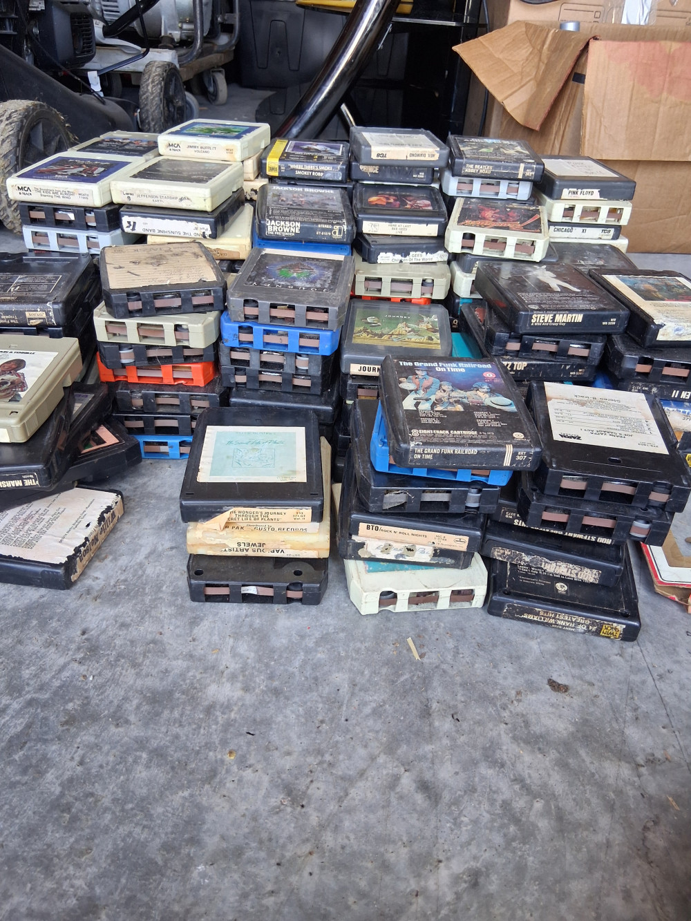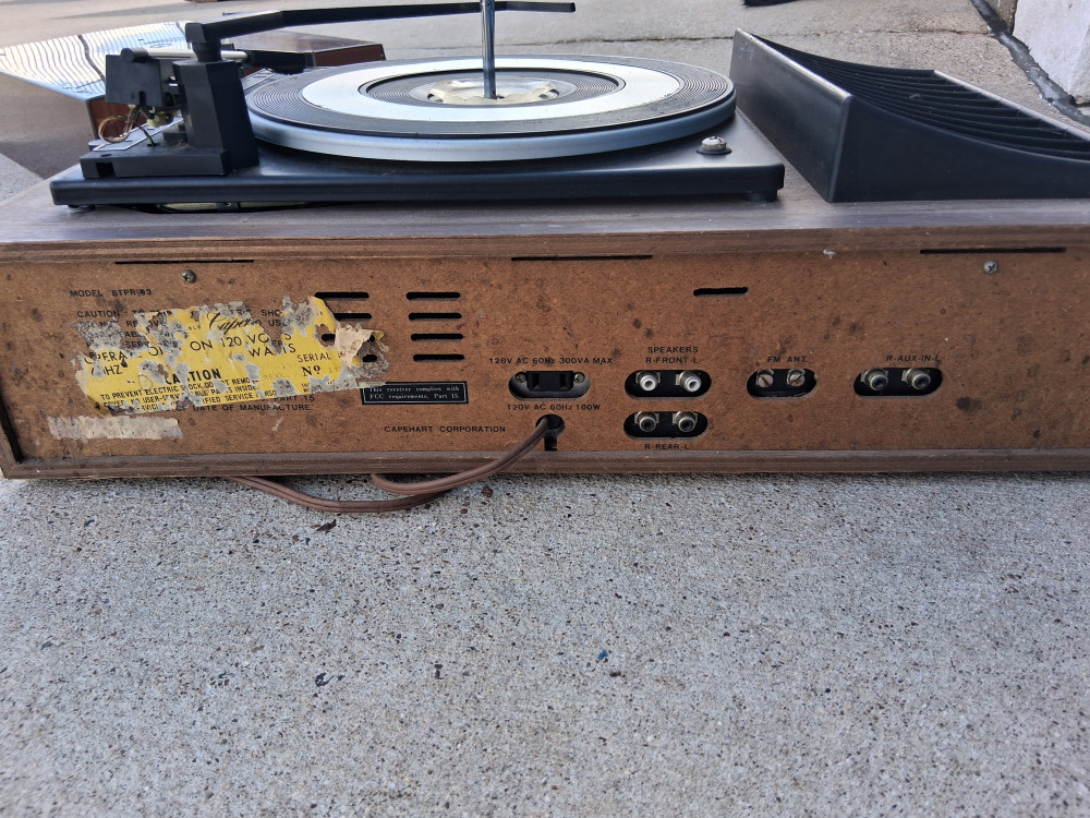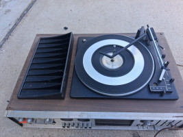 8 Track and Record player with 170 8 tracks. Can't speak to the functionality of the record player but the 8 track player was in working condition when I put it in storage. I tested about 10 8 tracks and they all worked. Some may need a little repair.