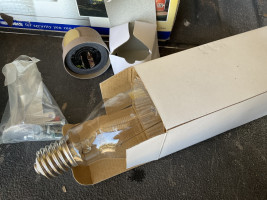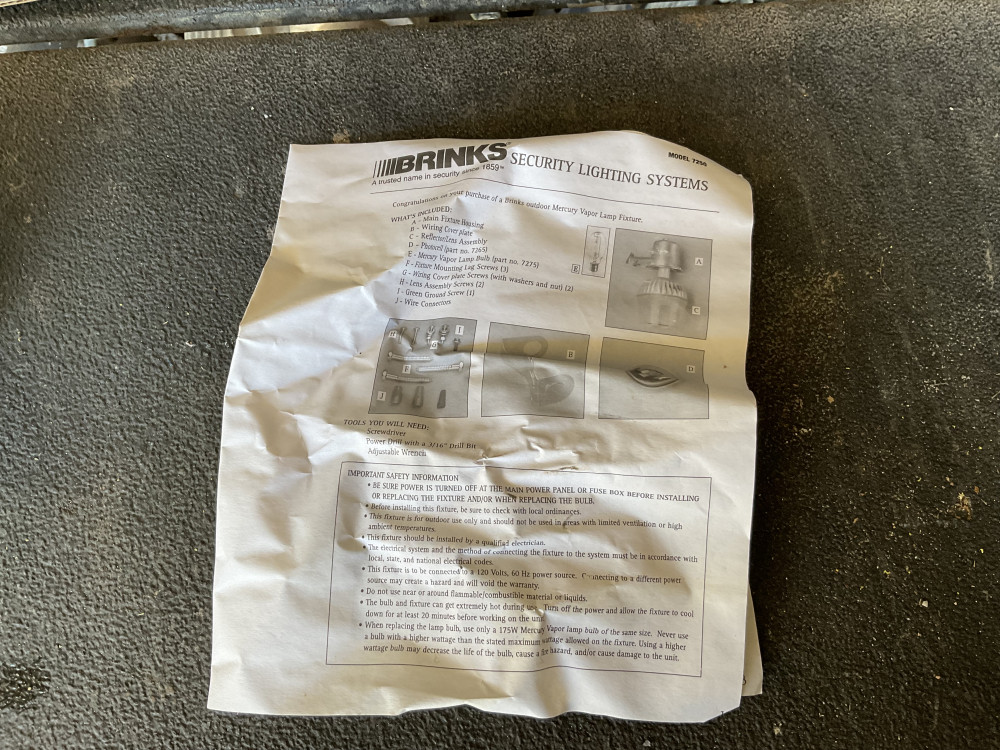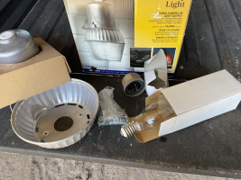 Used but in box. Includes the bulb and light sensor. Looks like it’s missing the plastic globe. I didn’t test it.